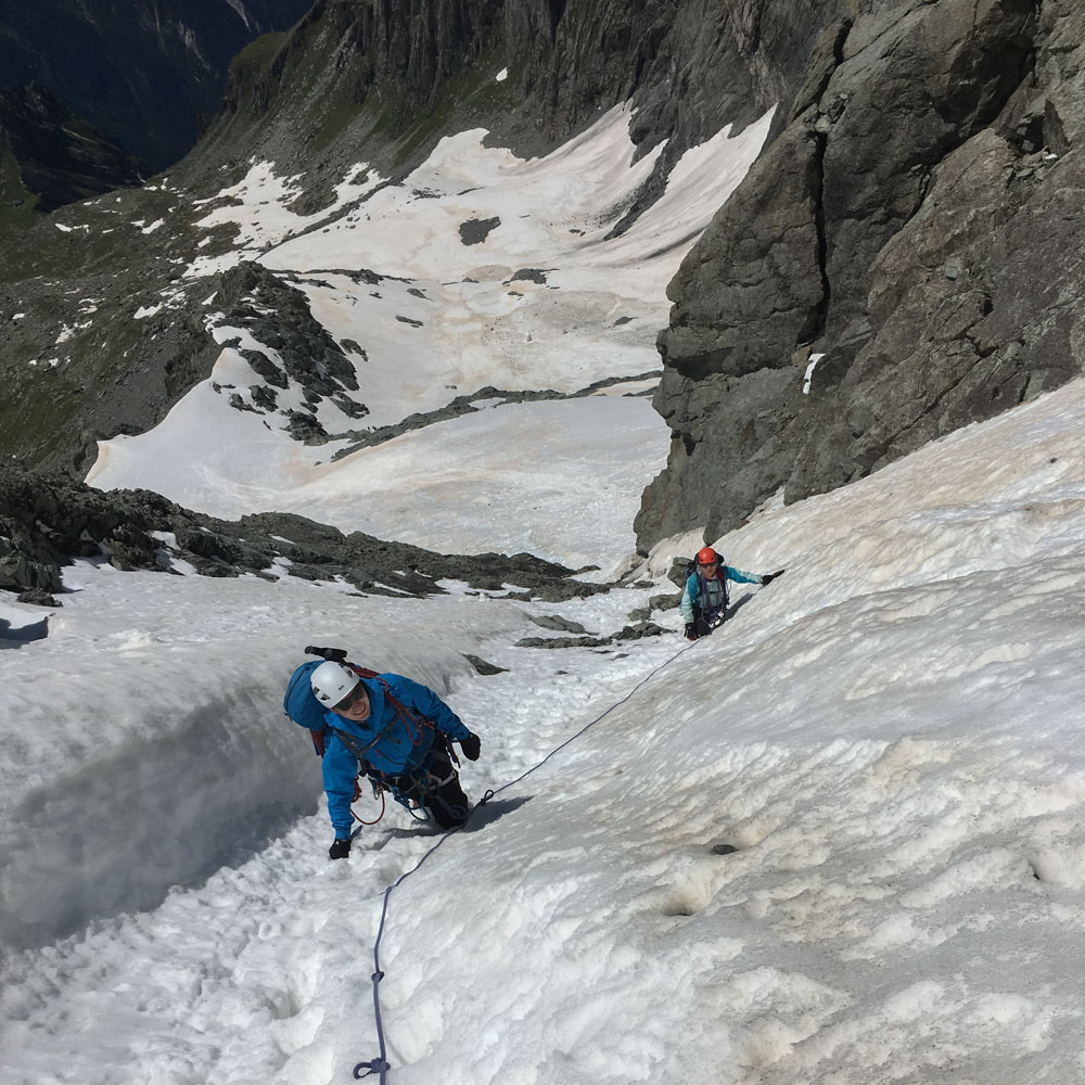 Glacier que nous avons remonté jusqu’à arriver sous le sommet en rocher facile que nous avons escaladé (3399m).