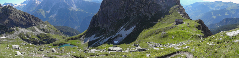 Après avoir quitté les derniers névés, nous avons rejoint un sentier conduisant au refuge du Grand bec (accueil tonique et sympathique).